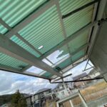 姫路市阿保にて、自転車置き場の屋根(ポリカ波板)交換のご依頼をいただきました。強風でひび割れが広がり、「割れて飛んだら近所に迷惑がかかる」とお困りの状況。